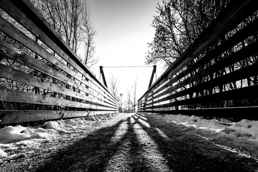 Wähle einen neuen Standpunkt, um durch eine andere Perspektive die Dinge vielleicht geordneter, klarer und eindrucksvoller zu sehen. Oft genügt es schon, in die Knie zu gehen, den Bildhorizont also nach unten zu verlagern und das Geschaute gegen den Himmel freizustellen. Hintergründig – unwichtiges – wird, dadurch in seiner Wirkung abgeschwächt, zum Teil aus dem sichtbaren Raum verdrängt. Das Vordergründige aber er hält durch die nunmehr viel steiler auf dem tieffliegenden Fluchtpunkt zulaufenden Fluchtlinien eine gesteigerte, oftmals wuchtige Wirkung. Das mag sinnvoll, mag aber auch nur momentan überraschend sein. Wer Übung hat, kann es meistens sofort beurteilen. Willst du sicher gehen, mache vom neuen Standpunkt aus ein Bild. Anschließend suche weiter.